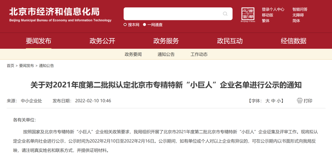中嘉和信繼2021年9月入選“專精特新”中小企業(yè)后,于2022年2月成功進階北京市專精特新“小巨人”梯隊。這是對中嘉和信深耕IDC領域十六載的充分肯定,對其“專業(yè)化、精細化、特色化、 新穎化”能力的認可,也是中嘉和信自主創(chuàng)新能力和技術研發(fā)實力的綜合體現(xiàn)。